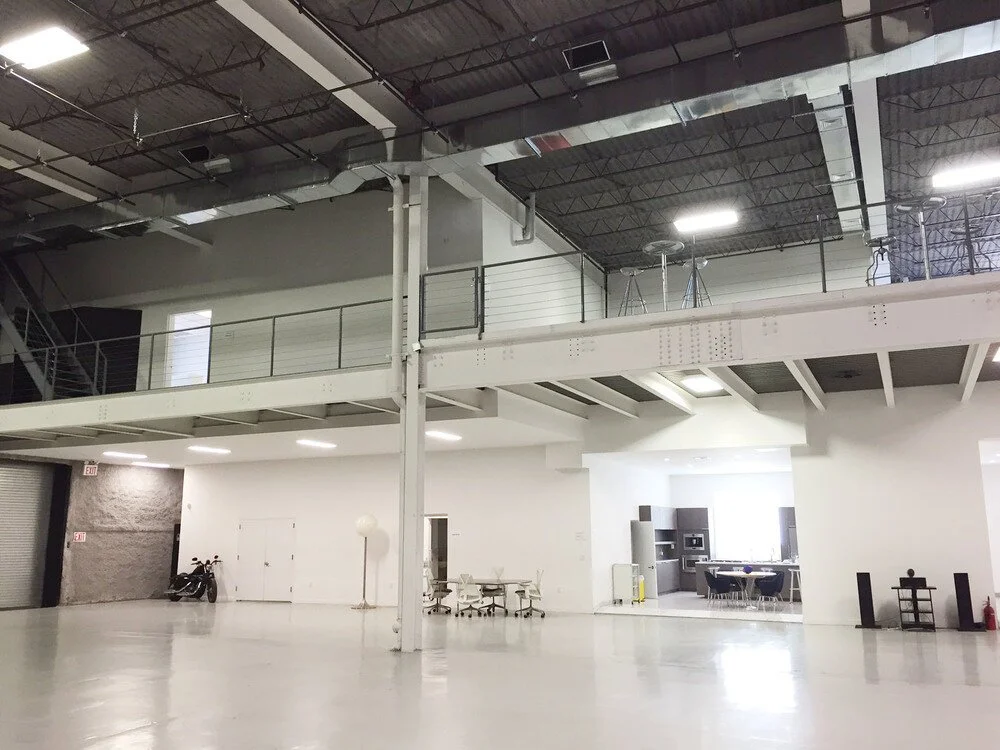 Studio 1 is a multi-level, soundproof soundstage ranging from 8,459 sq. ft. - 15,000 sq. ft. The facility is drive-in accessible with a ceiling height of 28 ft. – perfect for large set builds for commercials, TV, film, photography, and live streaming / broadcast event productions. Set construction crews have access to 6,131 sq. ft. / 4,331 sq. ft. (column-free) with a ceiling height of 28 ft. and an additional 1,800 sq. ft. with a ceiling height of 14 ft. located under the mezzanine. Studio features include 1,800 amps / 3-phase power, two drive-in entrances, a shoot-in kitchen, dressing room with hair sink, green room, lounge, production offices on the second floor, and a dedicated internet fiber optic control panel for live stream events. The rooftop offers a spectacular, panoramic view of the New York City Skyline.